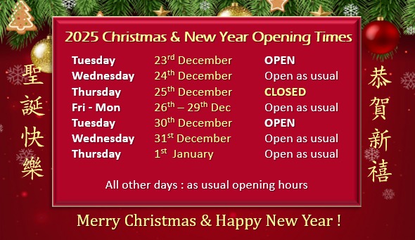 Most of our dishes contain garlic, soya, gluten, cooking wine, sesame oil if you have any allergies to these products, please inform us before before ordering.